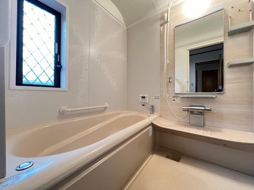 【リフォーム前】 照明取付、クリーニング等をこれから行ってきれいになります。 手すり付きで安心して入浴できる安全設計が嬉しいですね。