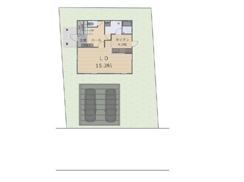 【駐車場イメージ図】 駐車場の車配置イメージ図です。 カーポート付きで並列で2台駐車可能です。 カーポートが大切な愛車を雨汚れ、紫外線や黄砂から守ります。