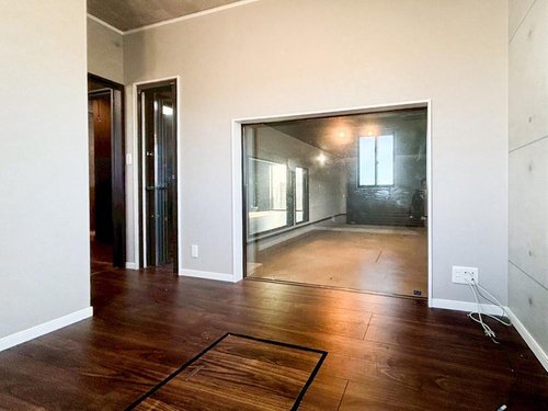 【これからハウスクリーニングできれいになります】LDKからガレージを見た写真です。愛車を“インテリア”として楽しむガレージハウスです。愛車を身近に感じる、ガレージとつながる暮らしがおくれます。