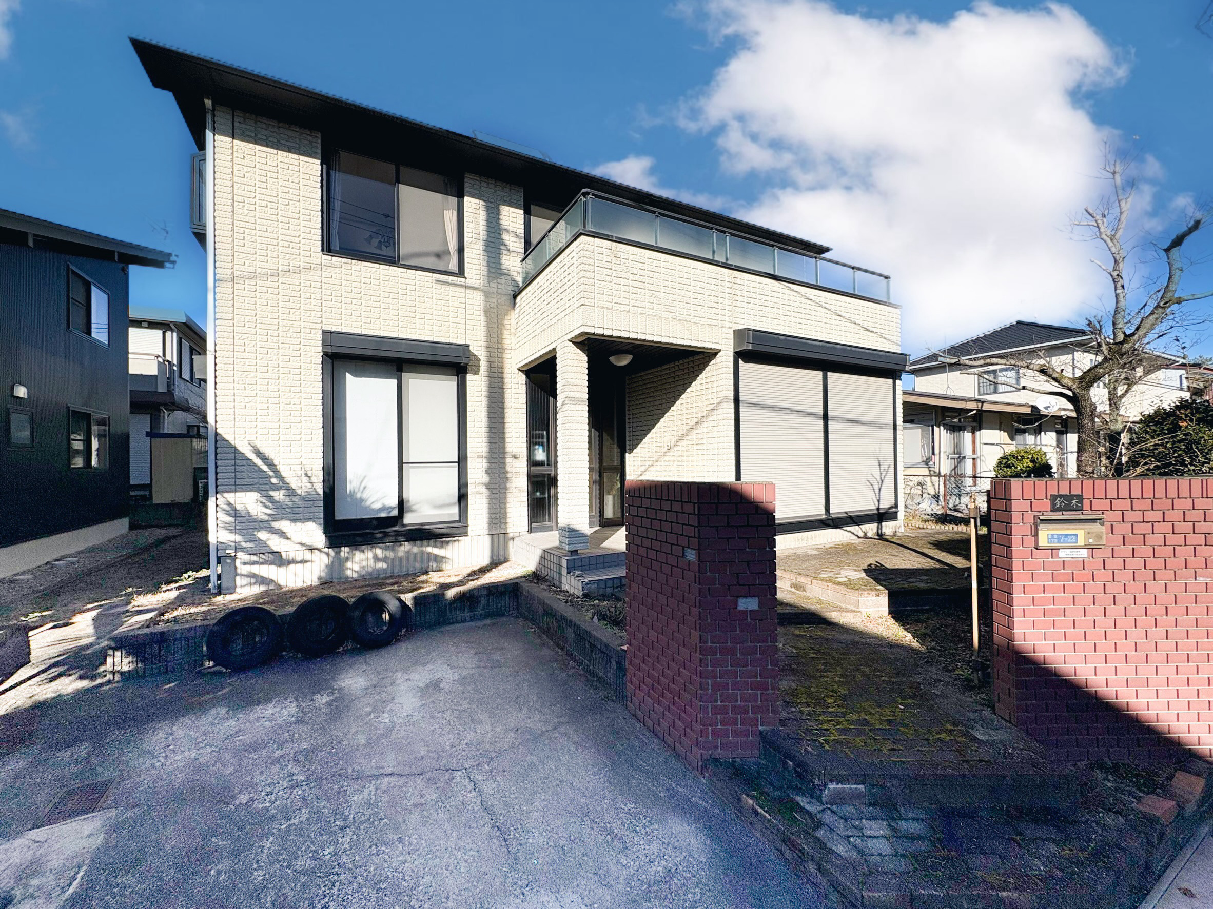 ミサワホーム施工の丈夫な鉄骨造です。 閑静な住宅街・南向きで陽当たり良好です。2階バルコニーが印象的な重厚感のある2階建です。暮らしやすい4SLDKです。