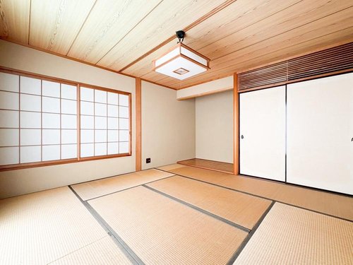 【1階8帖の和室です】 床の間も付いて、季節のお花や掛け軸など自分流にアレンジする事ができます。2面採光で明るい和室です。