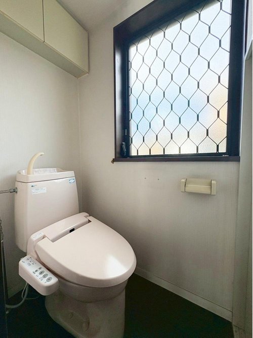 【1階トイレです】 窓にお洒落な格子が付いているので、換気も安心です。リフォームの相談も承ります。お気軽にお問合せ下さい。