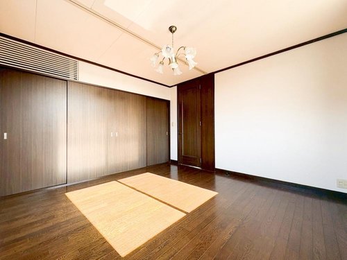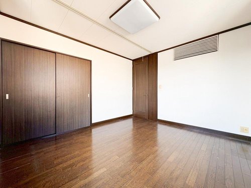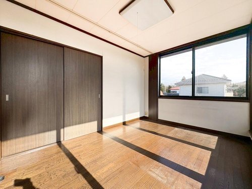 【2階8帖洋室です】 南と西の2面採光で明るいお部屋です。壁一面のクローゼットでお洋服や季節物などもたっぷり収納できます。