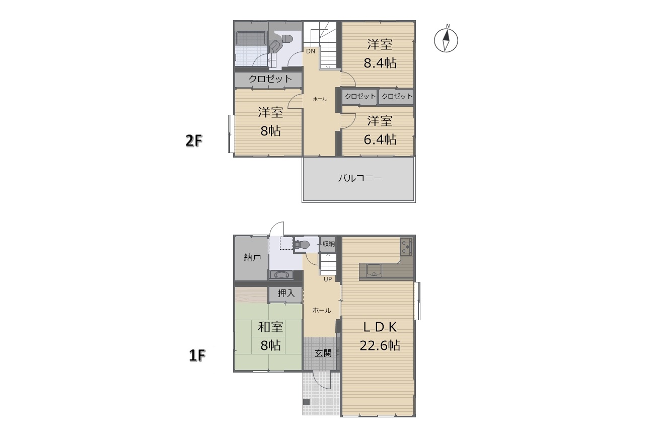 構造・間取り 鉄骨造スレート葺2階建 / 4SLDK