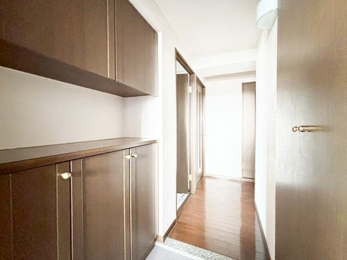 【ハウスクリーニングして綺麗にします】靴をしっかり収納できるシューズボックスと、コートなどをかけられる収納スペースが左右に付いた便利な玄関です。