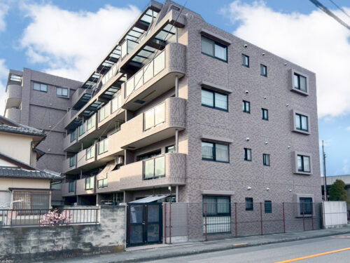 6階建てマンションです。5階なので眺望良好、開放感のある暮らしがおくれます。落ち着きあるタイル張りの3LDK住戸です。オートロック付きで管理の行き届いた分譲マンションです。