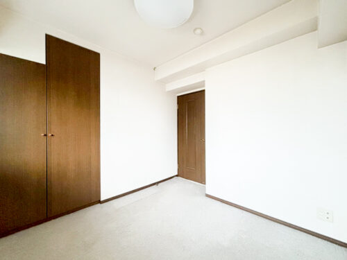 【ハウスクリーニングして綺麗にします】6帖の洋室です。 北側なので夏は涼しい風が通り抜けます。収納が二つ付いているので、整理整頓できます。出窓の下にも明り取り窓が付いているので明るいお部屋です。