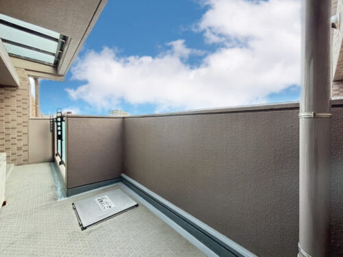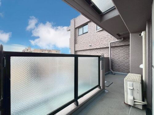 【ハウスクリーニングして綺麗にします】向きのワイドバルコニーは天窓付のひさしが付いています。お天気の急変のある日も安心してお洗濯を干せますね。クリアパネルで圧迫感を感じません。