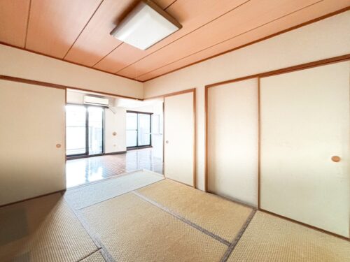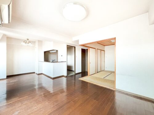 【ハウスクリーニングして綺麗にします】LDK13.7帖のリビングにつながる和室6帖で約20帖の大空間になります。南向きで見晴らし良好です。和室もフラットで繋がっているので、大変便利にお使いいただけます