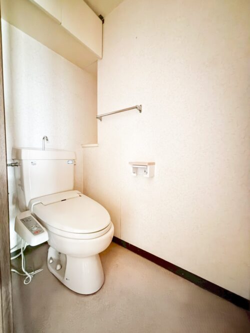 【ハウスクリーニングして綺麗にします】上部収納付きでスッキリ片付く、清潔感があり使いやすいトイレです。まだまだ綺麗な温水洗浄便座です。リフォームで新品交換し手新生活を始めるのもいいですね。