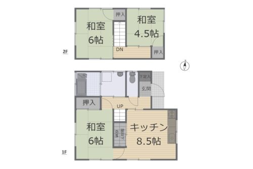 構造・間取り 木造瓦・亜鉛メッキ鋼板葺2階建 / 3K