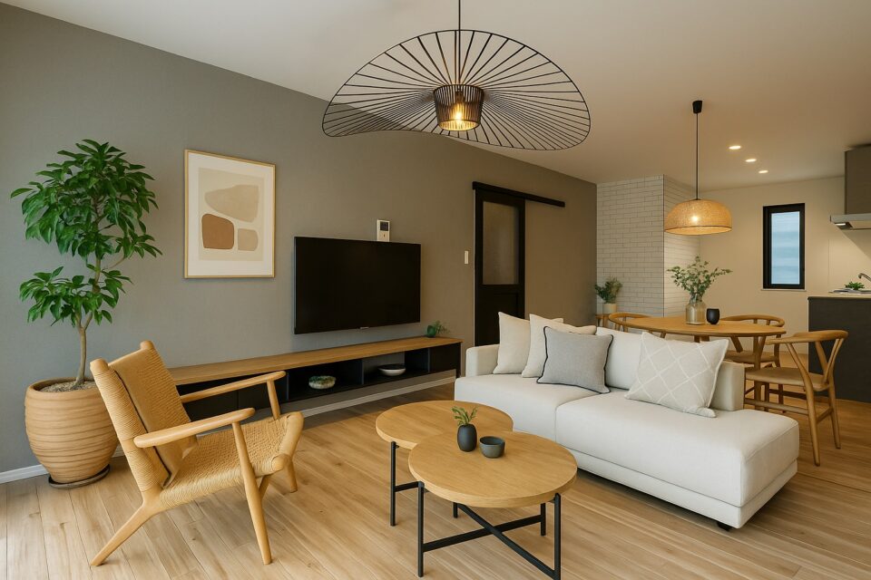 【リフォーム完了】 クロス・クッションフロア張替えを行いきれいになりました。ダイニングテーブルやソファの配置を考えるのも楽しみですね。