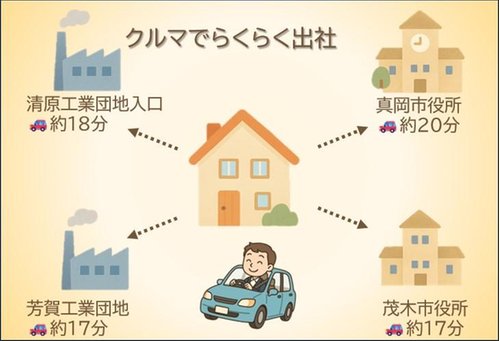 ○清原工業団地まで18分、芳賀工業団地まで17分、