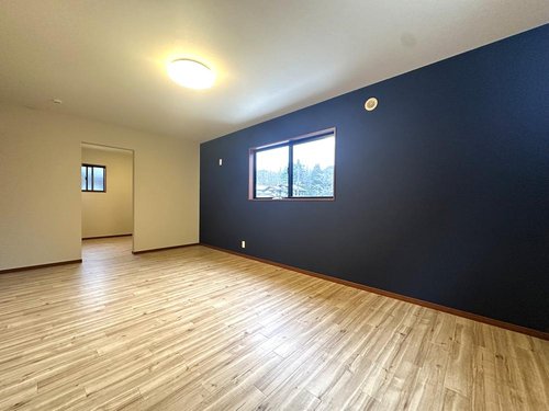【リフォーム完了】 2階10.5帖洋室です。 クロス・クッションフロア張替えできれいになりました。 ウォークインクロゼット付きで寝室にぴったりなお部屋はアクセントクロスでワンランク上の空間を演出します。