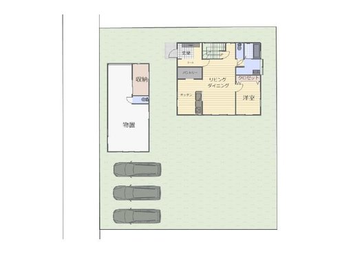【駐車場イメージ図】 並列3台駐車可能です! お友達やご両親が来ても駐車場に困りません。