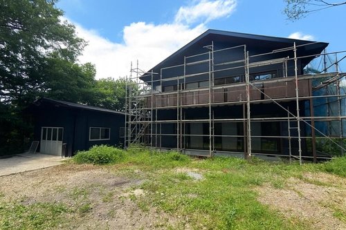 足場を組んで外壁・屋根塗装をしました。 しばらくメンテナンスの必要がないので安心して長く住めますね。
