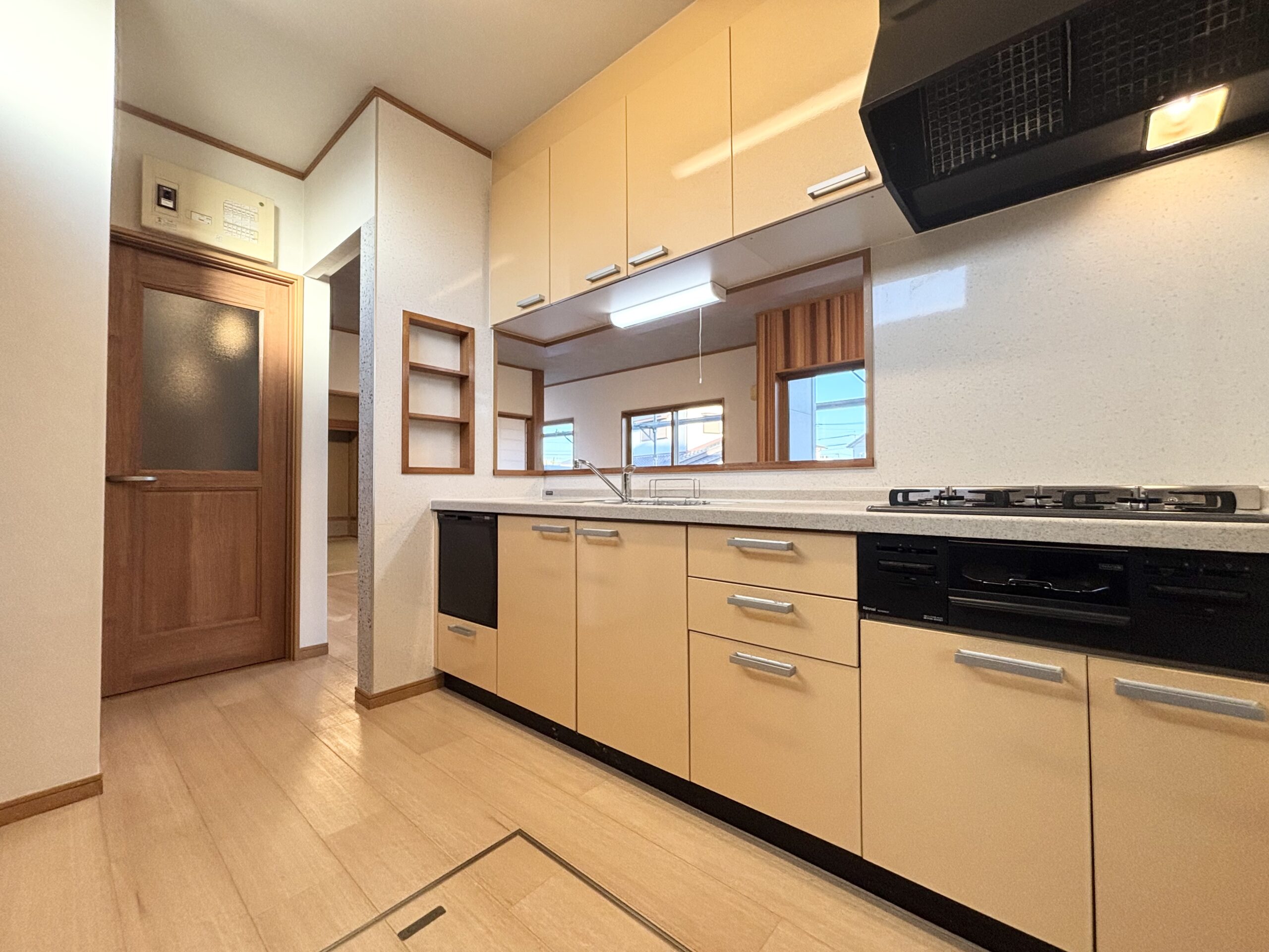 【リフォーム後】 クロス張替え、キッチン水栓交換、クリーニングで綺麗になりました。作り付けのニッチが付いてスパイスなども整理整頓できます。嬉しい食洗器がついています♪