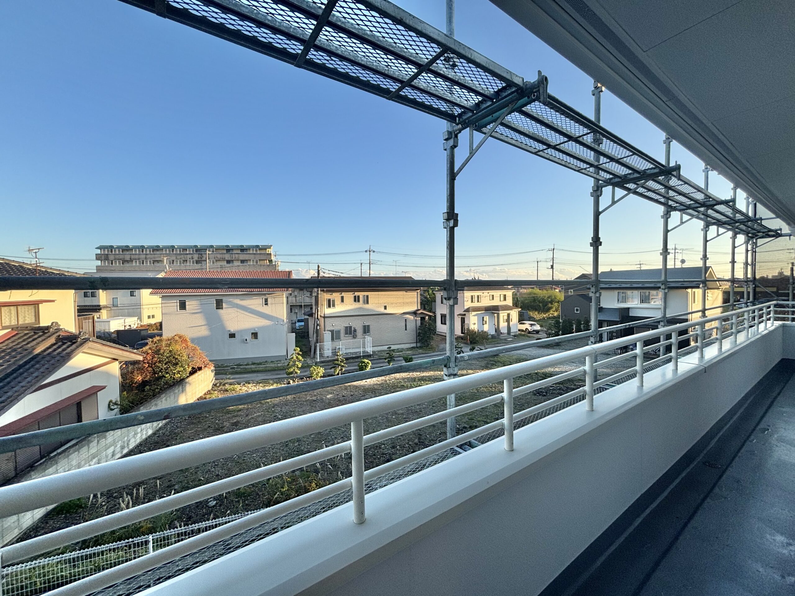 【リフォーム後】 クリーニングして綺麗になりました。3部屋分のワイドバルコニーなので、お洗濯物やお布団も沢山干せますね。