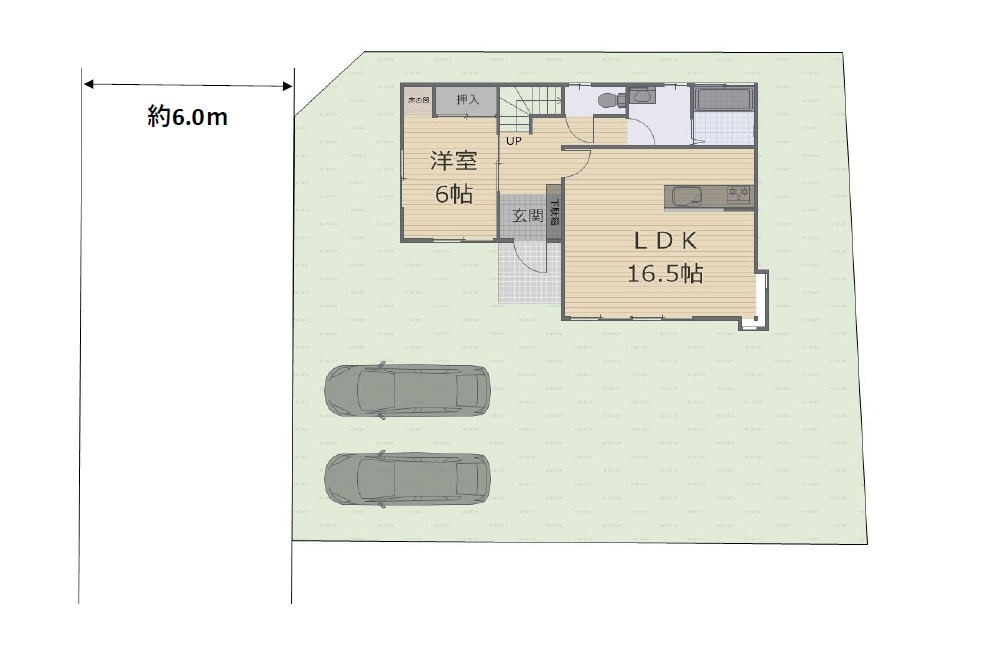 【駐車場イメージ画像】 駐車場の車配置イメージ図です。 並列で2台駐車可能です!