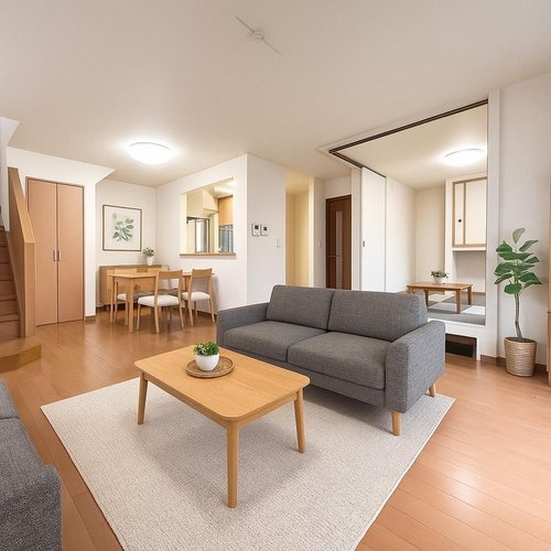 【家具配置イメージ画像】 リビングに家具を配置したイメージ画像です(実際に家具は付きません)。