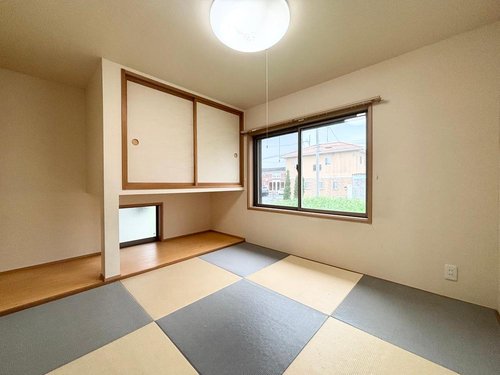 【クロス張替え、畳表替えできれいになります】 1階リビングに隣り合う和室です。