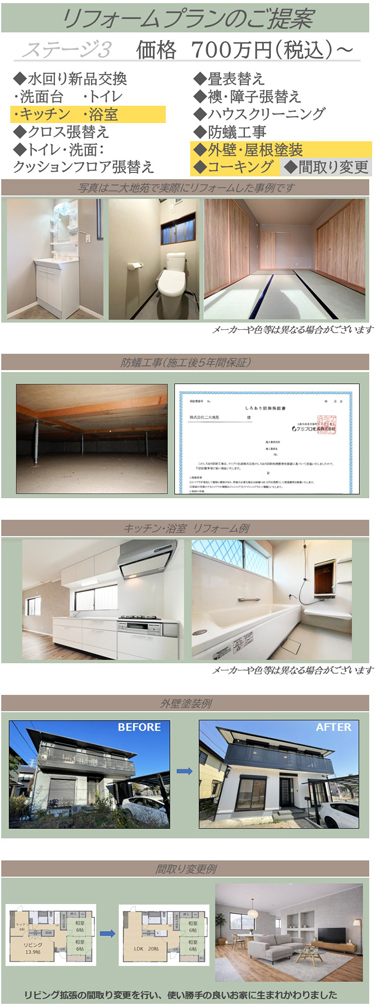 お客様にはリフォームプランをSTAGE1~3に分けてご提案しております。